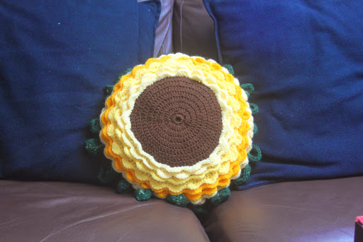I hope the weather has not been too bleak where you are. It’s been grotty here all week and I have been driving home in thick fog for most of the week. Which is just horrible! I have finally gotten around to finishing the sunflower cushion! Hurray!! So here is the big unveil, I hope you like it!