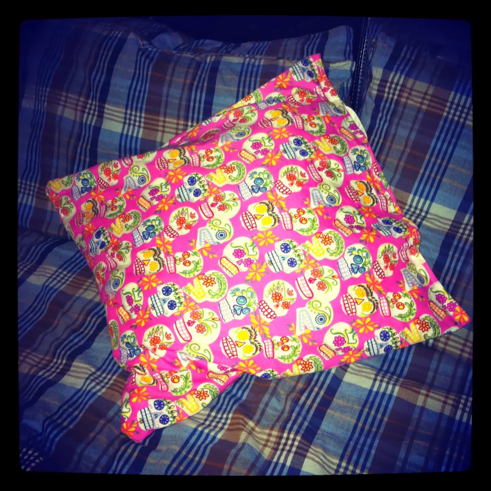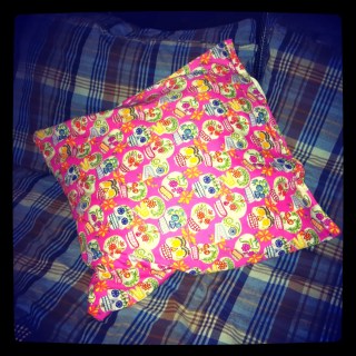 I bought some really nice skull fabric which I got in pink for me and black for D so that we could have matching cushions, Squee!!