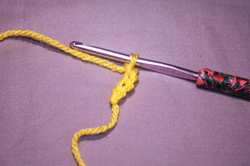 Slip stitch into the next stitch and chain another 8, double crochet into the same stitch. Chain 8 and double crochet into the same stitch again. You should end up with two petals in every treble stitch. If this is your first daisy then carry on to the end of round one and slip stitch into the bottom of your first chain 8.