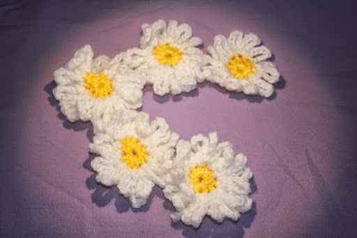 Repeat until you have 5 daisies all joined and weave in those pesky ends