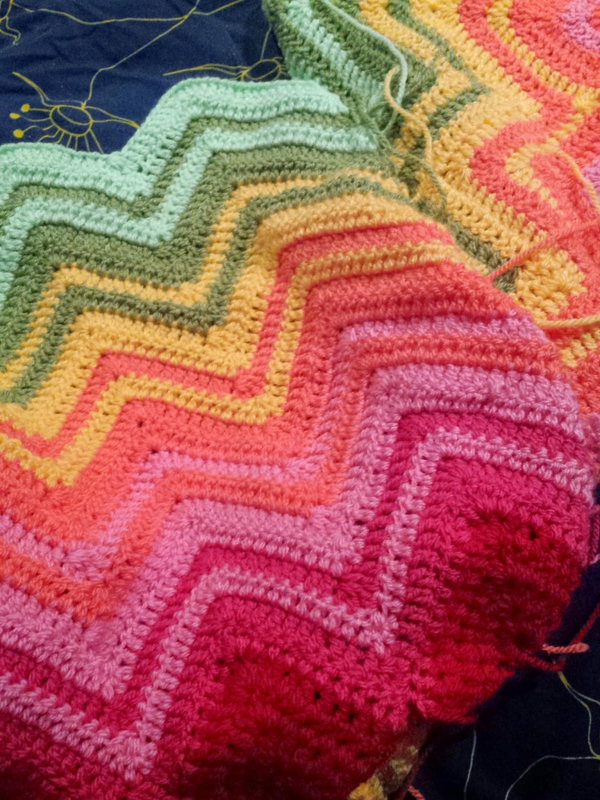 I’ve also done a bit more on my chevron blanket which I love more and more each time I add another colour to it.