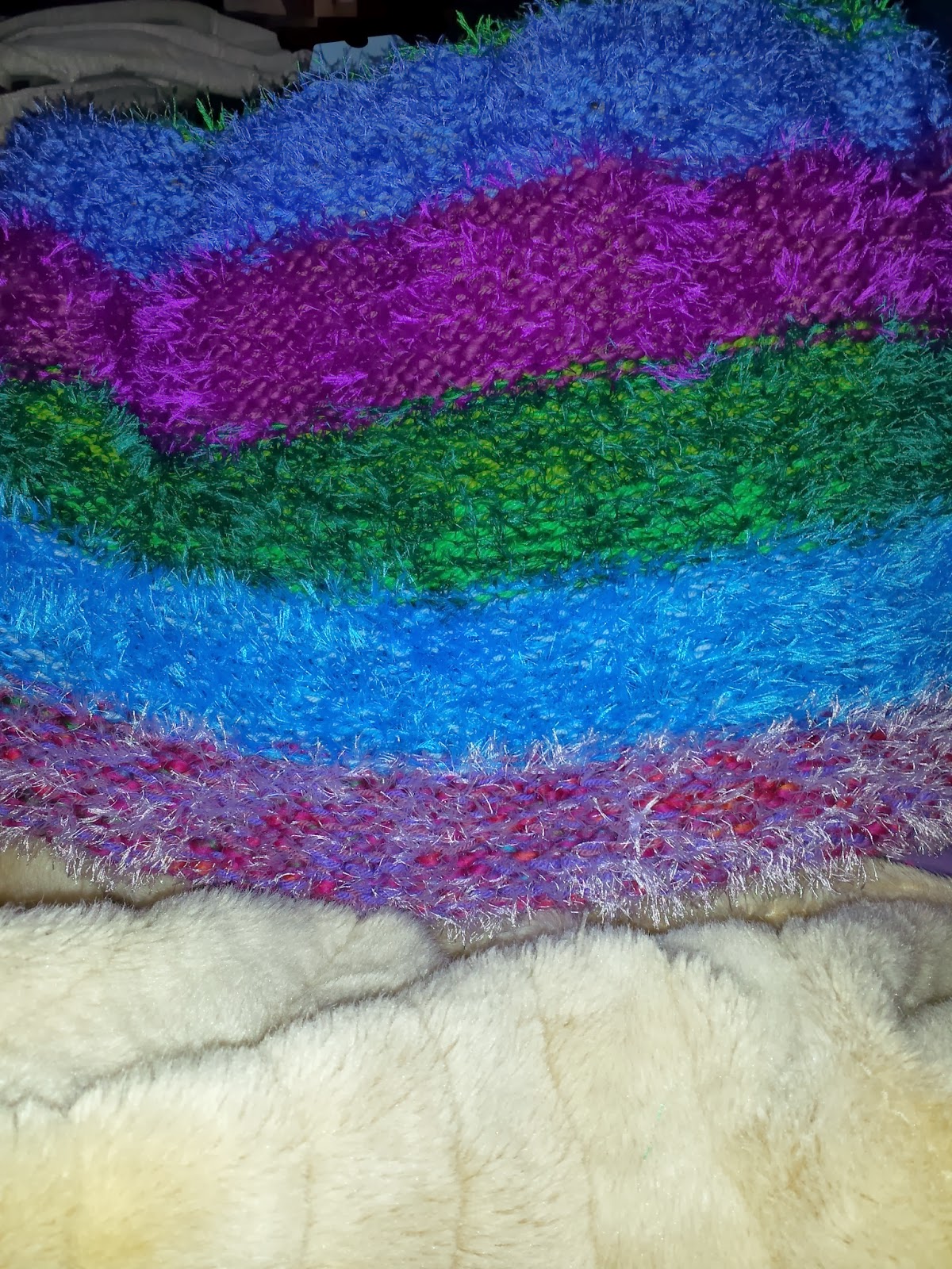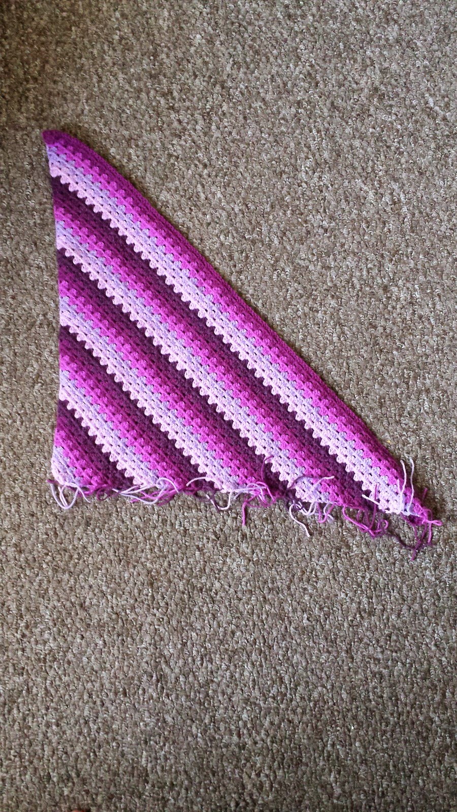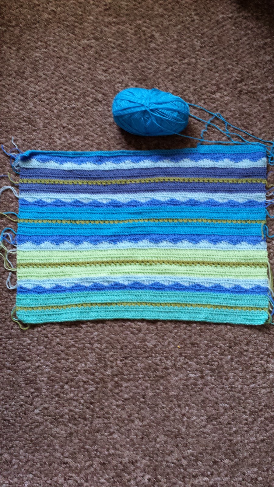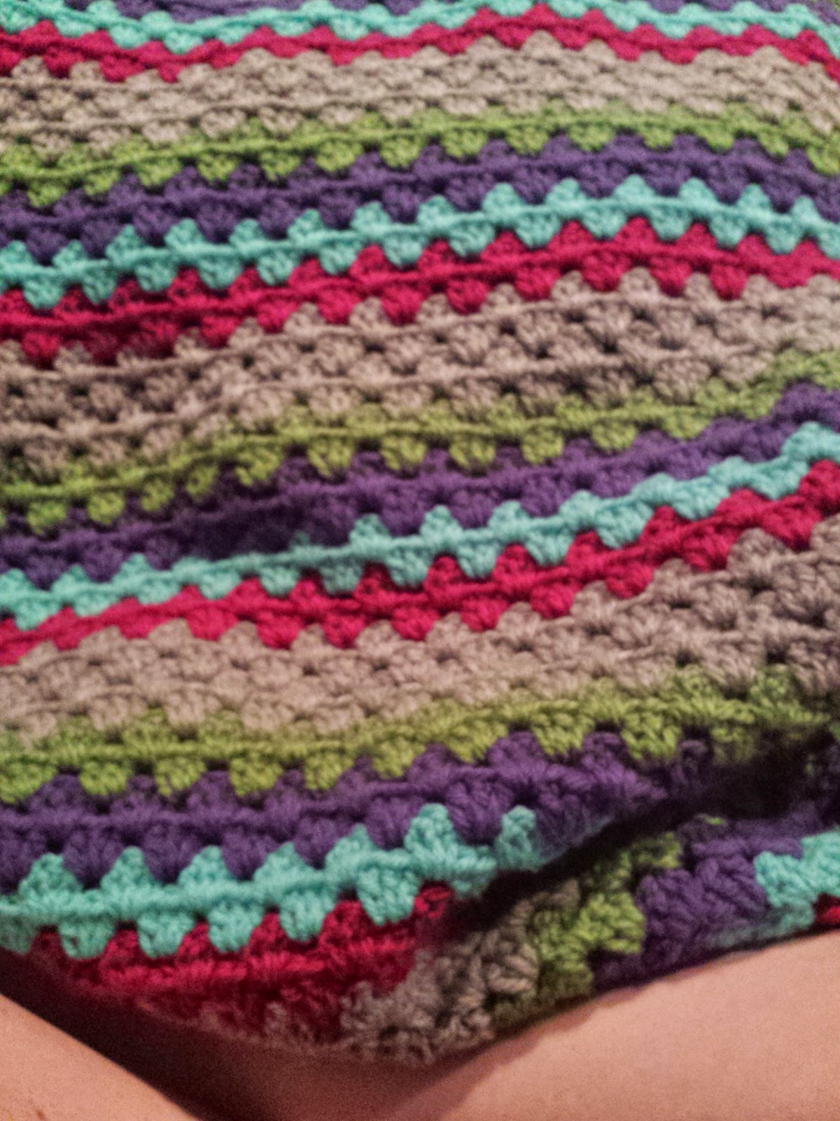 The other three blankets are for me and D. They are the chevron one, the granny stripe and a nice fluffy scrap buster knitted stripe.