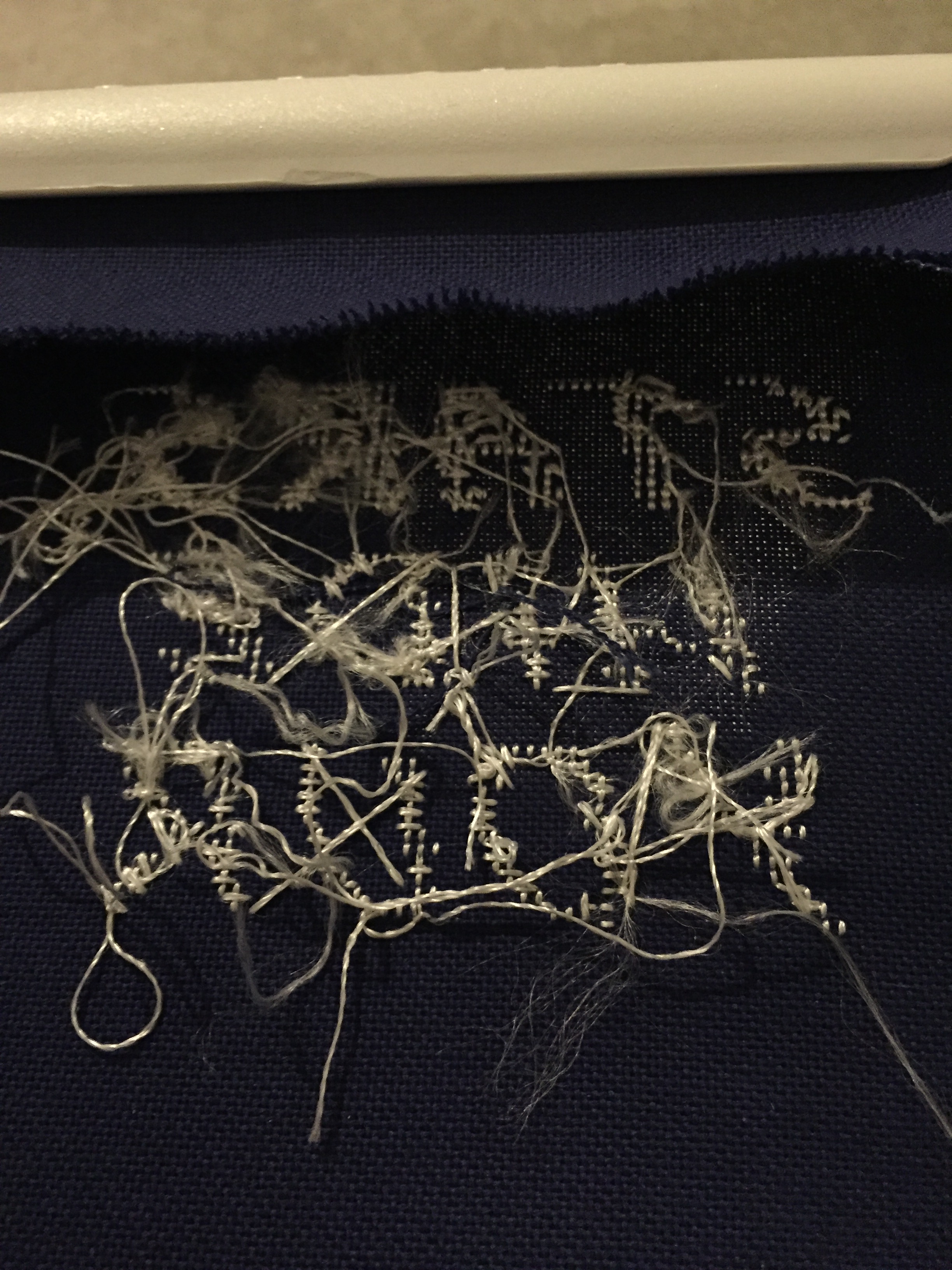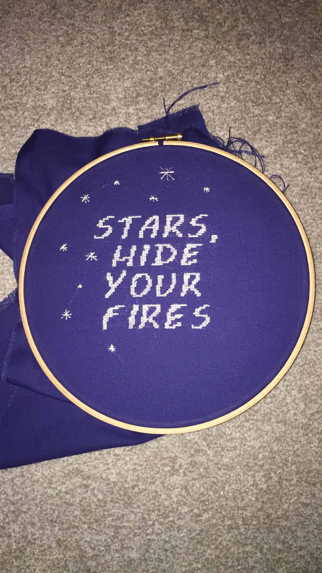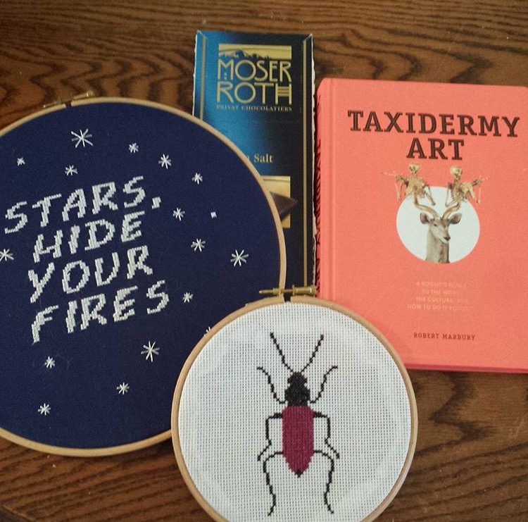 The next swap I took part in was the #darksideswap this was a really interesting one to do, and when I got my swap partners form I had to really think about what I was going to make. I knew I wanted to do a cross stitch of some sort as I couldn’t think of what to crochet that fitted in with her interests etc. Her favourite quote was a hamlet quote, so I decided to cross stitch that, I bought some navy even weave and used satin thread… really not a good combination. I don’t recommend satin thread at all!!!! I wanted to do the whole quote but the font pattern I picked proved to be quite big.