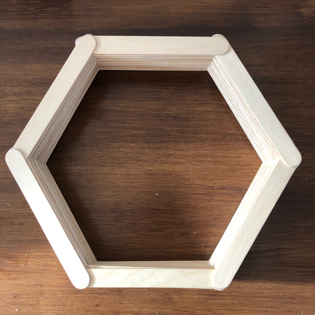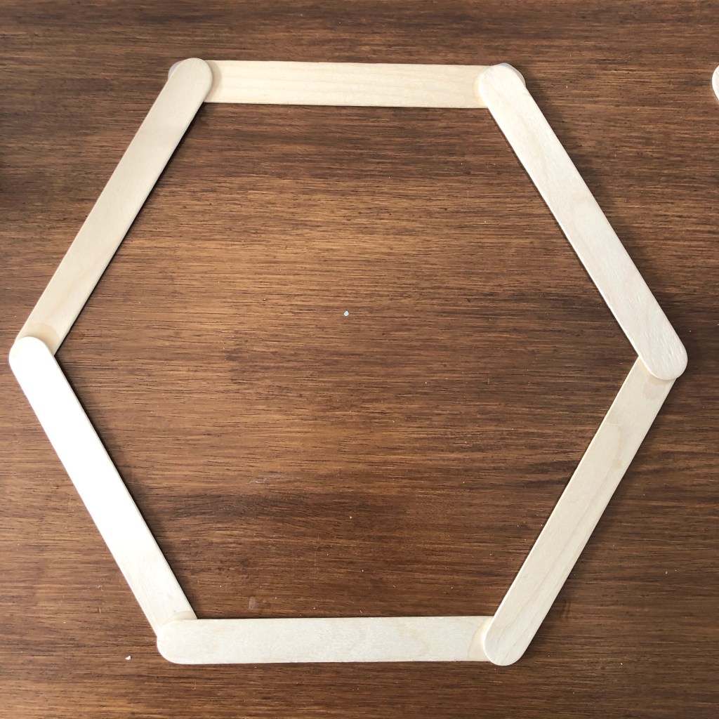 - Line up your 6 lollipop stitch’s to make a hexagon, layering them so that the ends overlap each other