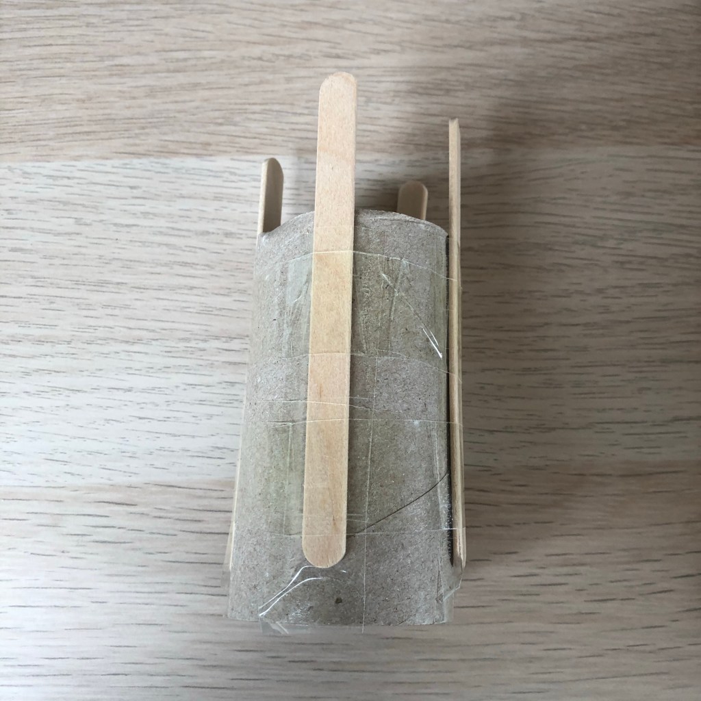 - Tape you lolly pop sticks to you toilet roll tube, so that they are evenly spaced around the tube – if you only have two then cut them in half (it may also help you to number them)